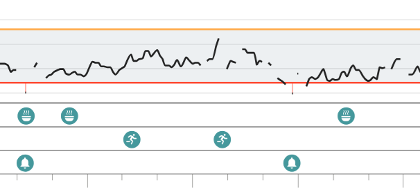 前回の測定で入眠時に高血糖状態が続いていたので、血糖値が下がるまで夜ふかししようと思っていたのですが、その必要すらありませんでした。
