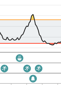 ウォーキングだと緩やかに下がる、スプリントだと一気に下がり元に戻っていく、という感じですかね。運動し始めで一気に下がっているので、ジョギングでもスプリントでも血糖値的には変わらないのかも。