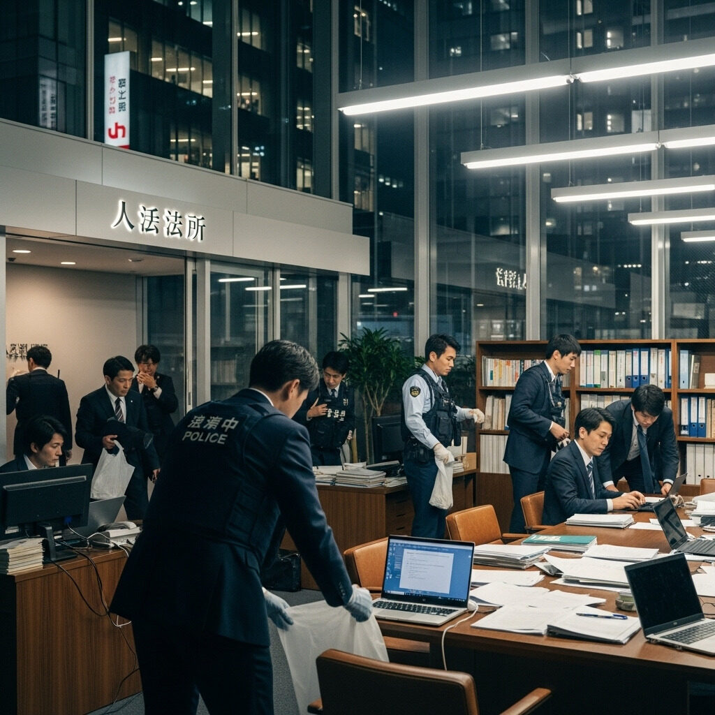 今回は、まだ家宅捜索を受けたという報道だけですので、実態がどうかは不明です。